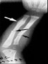 En este caso se puede observar con flechas negras, fracturas recientes de ulna y radio, Con flecha blanca una fractura de la ulna consolidada, pues presenta callo óseo abundante incluso comenzando el período de recanalización del hueso.